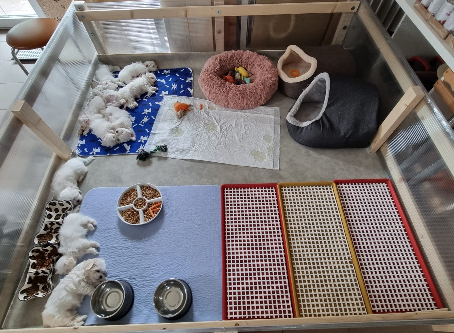Najmenšie šteniatka majú aktuálne 5 týždňov. Sú veselé, zdravé, krásne a aktuálne prechádzajú etapou postupného prechodu na normálnu stravu. Šteniatka trénujeme hygiene na domáce záchodíky.